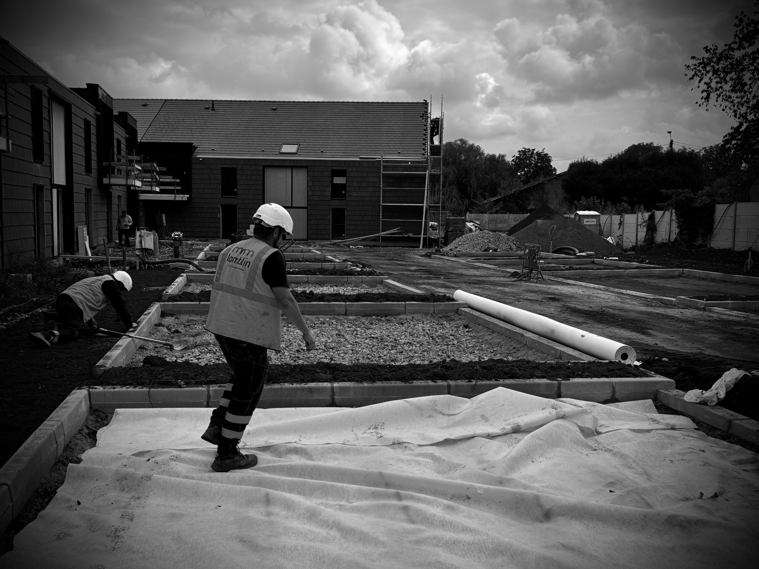 Réalisation de l'intégralité des travaux de bordure, d'aménagement extérieur, ainsi que les travaux de réseaux enterrés. Cela a permis d'alimenter les nouveaux logements en eau, gaz et électricité, tout en assurant une gestion efficace des eaux pluviales et usées.